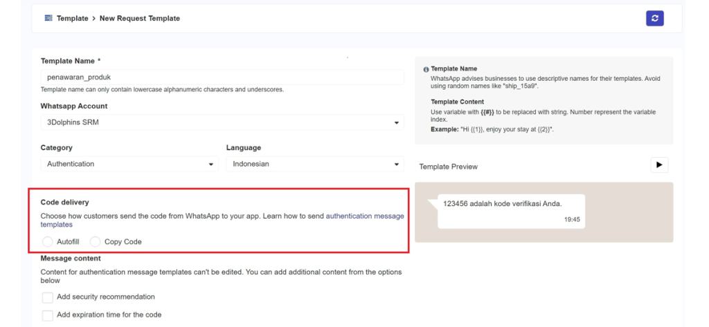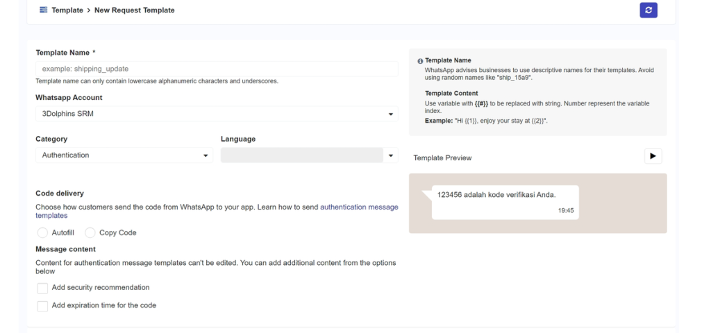 WhatsApp Authentication Template Resmi dari 3Dolphins